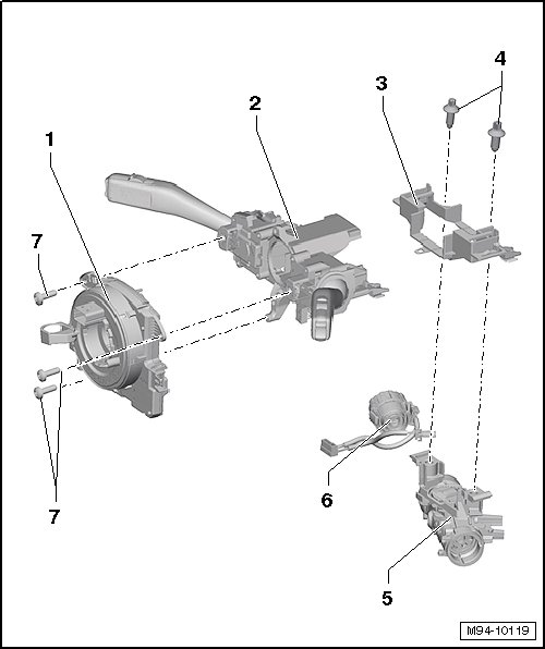 • Removing and installing, refer to => [ Steering Column Switch Mount, Valeo ] Steering Column Switch Mount, Valeo.