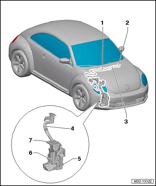 • Removing and installing, refer to => [ Washer Pump (V5) ] Service and Repair.