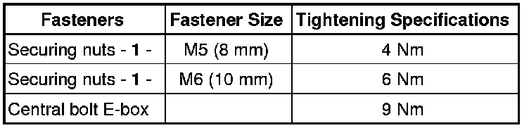 • Removing the central bolt - arrow - presses the E-box - 1 - up off the E-box bracket.