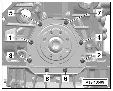 - Tighten the bolts in sequence - 1 through 8 - as follows: