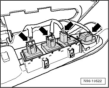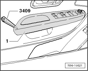 • When removing and installing components in a visible area (switches, covers, trims, etc.), use commercially available adhesive tape to mask off the areas at which a prying tool ( (VAS 3409) , screwdriver) will be positioned.