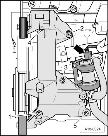 - Tighten the bolts to 25 Nm in the following sequence: 1 through 5.