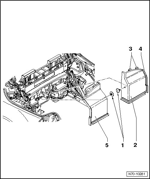 - Loosen right cover - 2 - from mounts in area of upper tabs - 3 -.