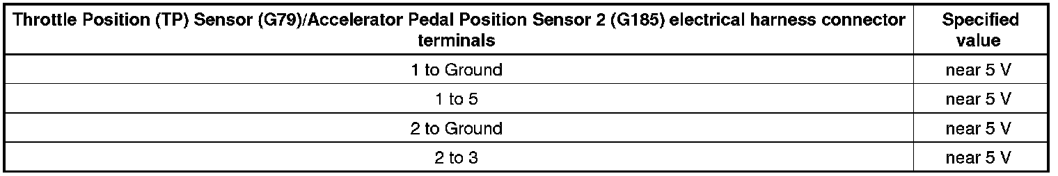 - Replace the Throttle Position (TP) Sensor (G79)/Accelerator Pedal Position Sensor 2 (G185). Refer to the Repair Information.
