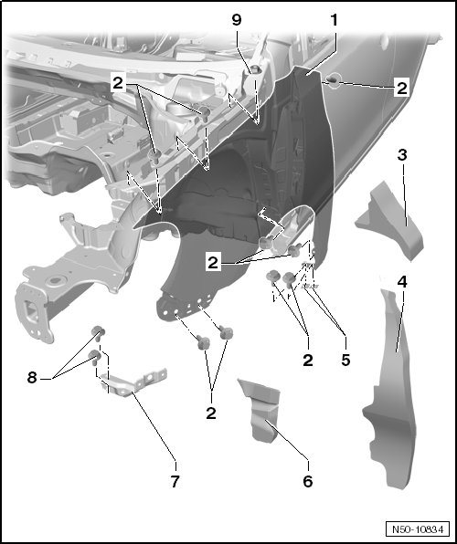 • Removing and installing, refer to => [ Fender Brace ] Fender Brace.