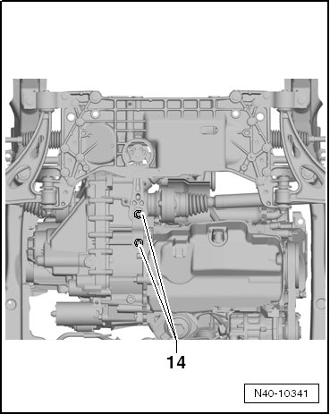 - Remove pendulum support from transmission, unscrew bolts - 14 - to do so.