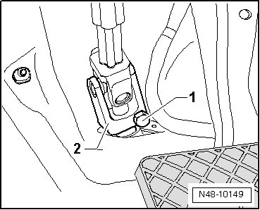 - Remove the bolt - 1 - and remove the universal joint - 2 - from the steering gear.