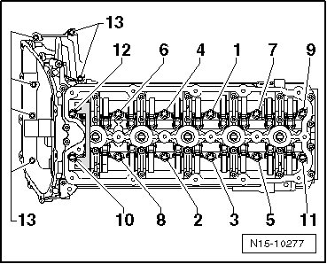 - Tighten the cylinder head bolts - 1 through 12 - in the sequence shown as follows: