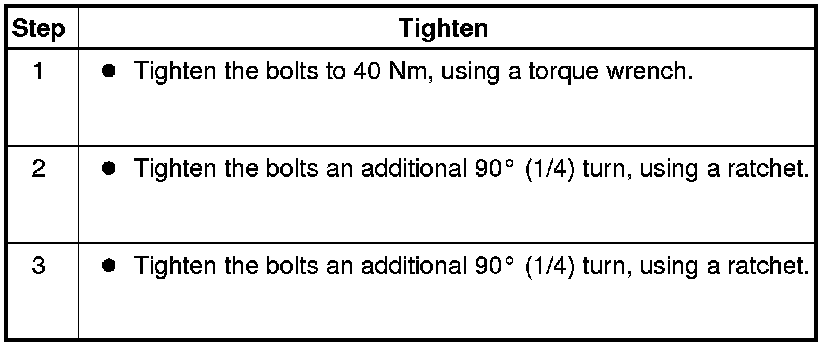 Third step Tighten an additional 90° (1/4) turn in sequence