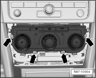 - Remove the A/C and heater controls trim, (Golf 2009).
