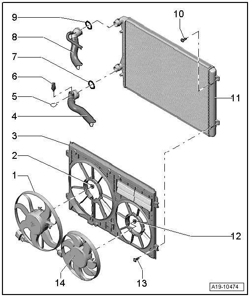11 - Coolant fan -V7- with Coolant fan control module -J293-