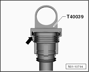 - Pull all the ignition coils approximately 10 mm out of the spark plug shaft using the ignition coil puller (T40039). Start with ignition coil - 1 -.