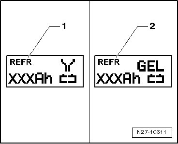 The symbol - 1 - for "refresh - charging wet batteries" or the symbol - 2 - for "refresh - charging of Gel/Absorbant Glass Mat (AGM) batteries" is indicated in the display.