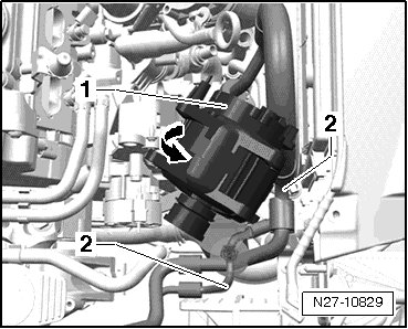 - Release the catch - 1 - and remove the EVAP canister - 4 - from the mounting.