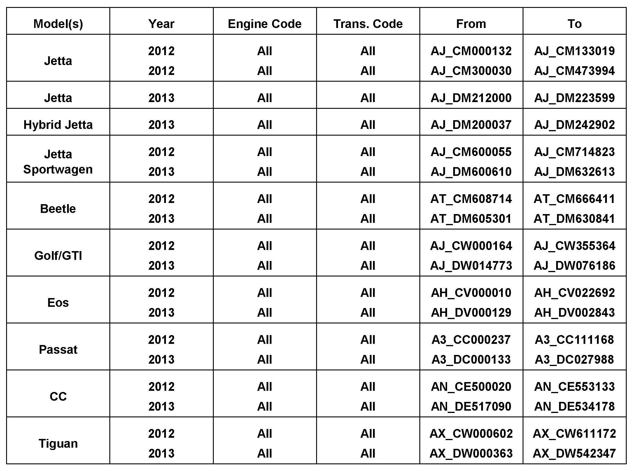 All models except Routan and Touareg.