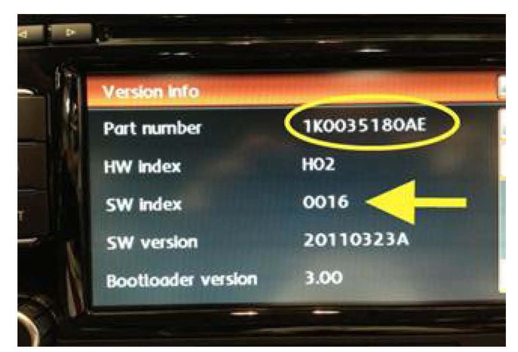 Radio part number and software indexes may be one of the following: