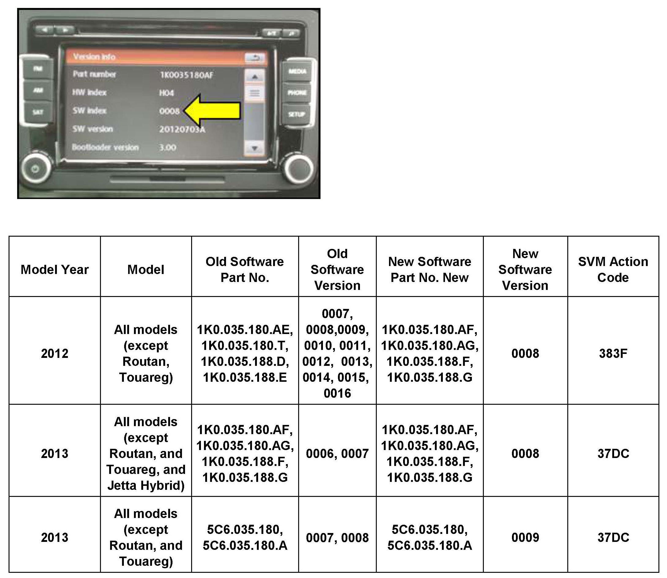 Programming contained in software level 0006, 0007, 0008 for certain RCD-510 Radio (Premium 8) radios may cause Bluetooth audio quality complaints for model year 2013 (SVM 37DC).