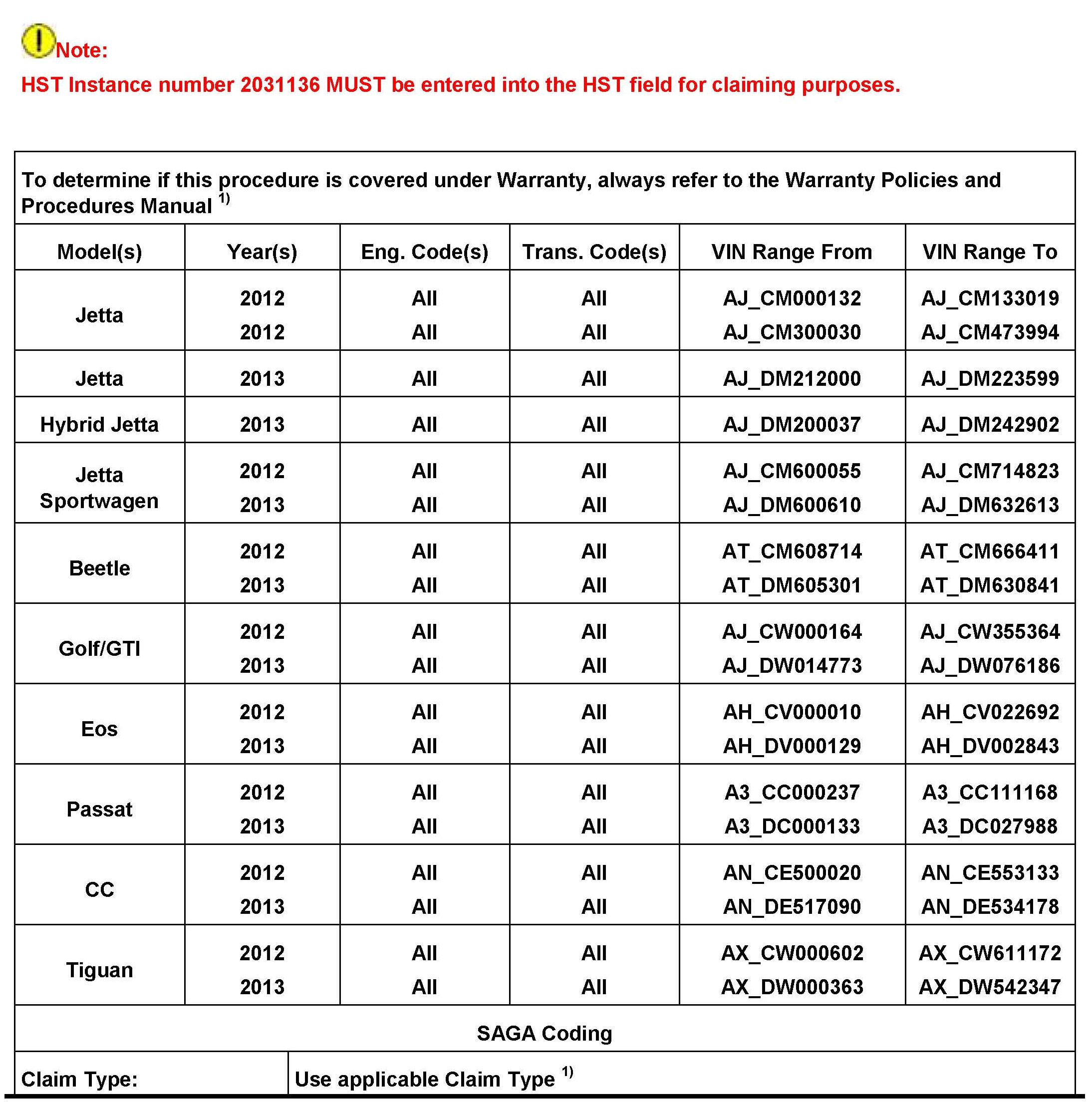 2031136 *Supersedes T.B. V911304 dated January 22, 2013 to include a special claiming note above the warranty table.*