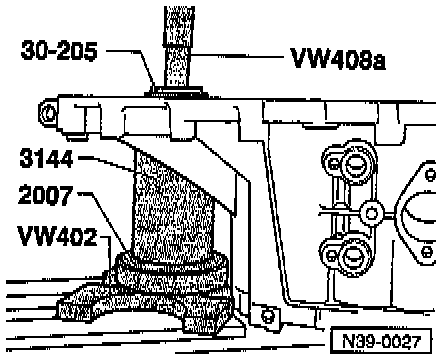 - Support the transmission housing using the press support-R&I wheel brg's (3144) directly under the bearing mount.
