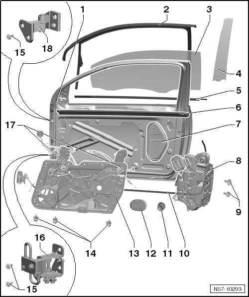 • Removing and installing, refer to => [ Inner Window Shaft Strip ] Service and Repair.