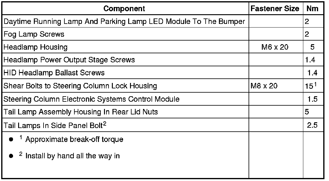 Fastener Tightening Specifications