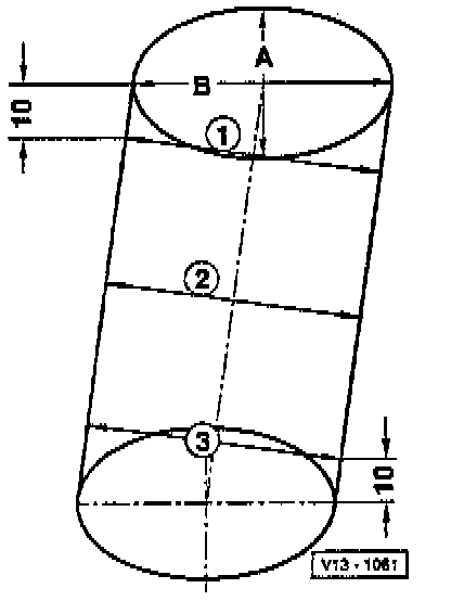 • Measurement of the cylinder bore may not be performed when the cylinder block is mounted on the engine and transmission holder (VAS 6095) or the holding fixture (VW 540) , false measurements are possible.