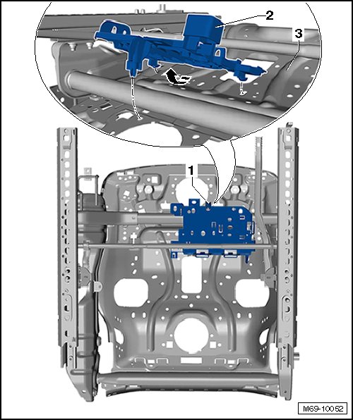 - Remove the bracket - 2 - from the seat frame - 3 - in - direction of arrow -.