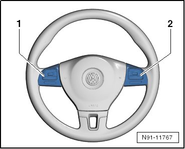 • The left multifunction buttons on steering wheel (E440) - 1 - with integrated multifunction steering wheel control module (J453)