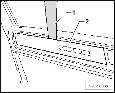 - Carefully pry the trim - 2 - off the driver door trim panel with a (VAS 3409) - 1 -.