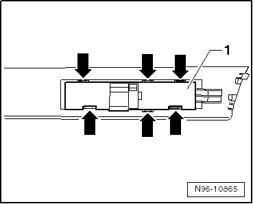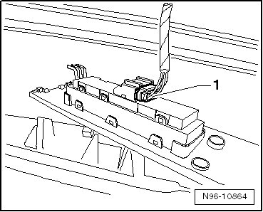 - Disconnect the connector - 1 - and remove the button module with the trim.