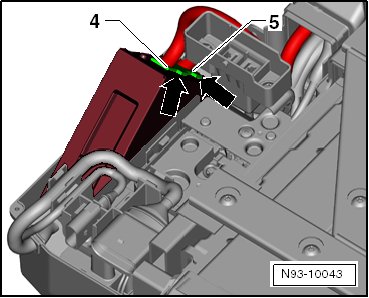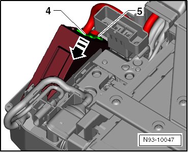 - Lift the battery regulation control module and disconnect the connectors - 4 - and - 5 -.