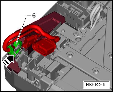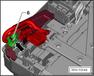 - Disconnect the connector - 6 - on the battery regulation control module and remove the wiring harness if the battery regulation control module is going to be replaced.