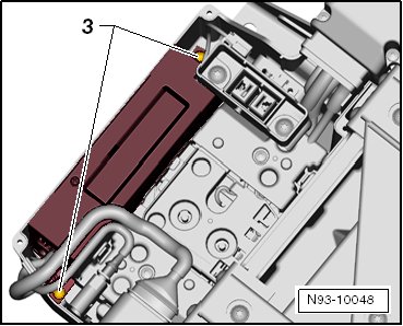- Remove both bolts - 3 - from the battery regulation control module using an insulated tool that has a magnet.
