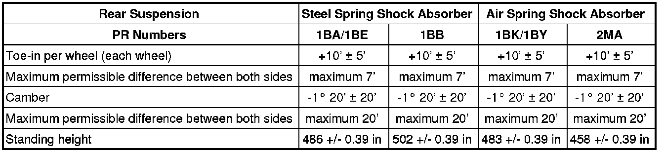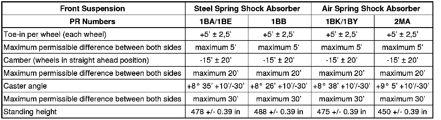 Wheel Alignment Specified Values