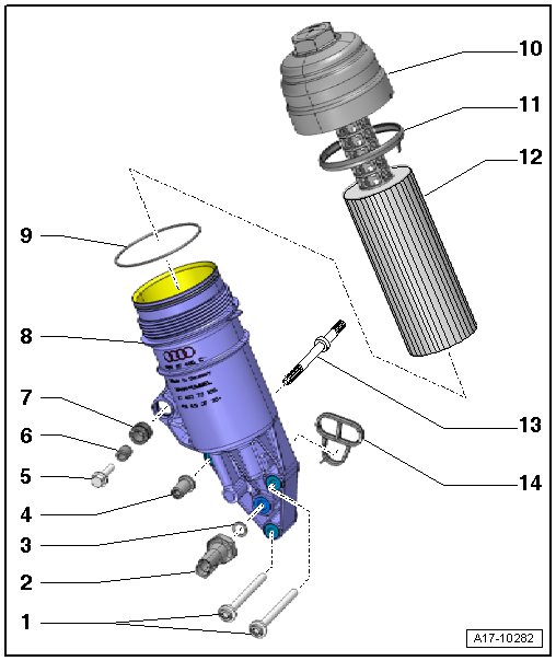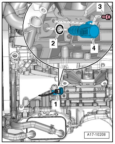 4 - Oil pressure regulation valve -N428- on the left side on the bottom of the engine