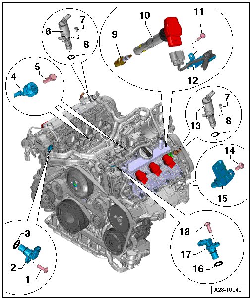 4 - Knock sensor 1 -G61- , Knock sensor 2 -G66-