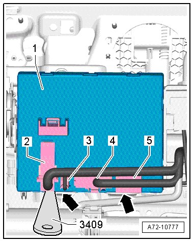 - Disconnect the harness connectors - 2 to 5 - on the control module - 1 -.