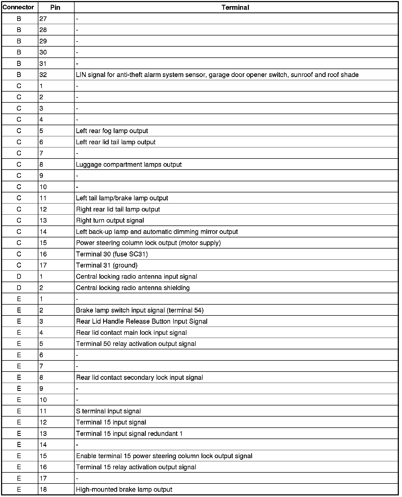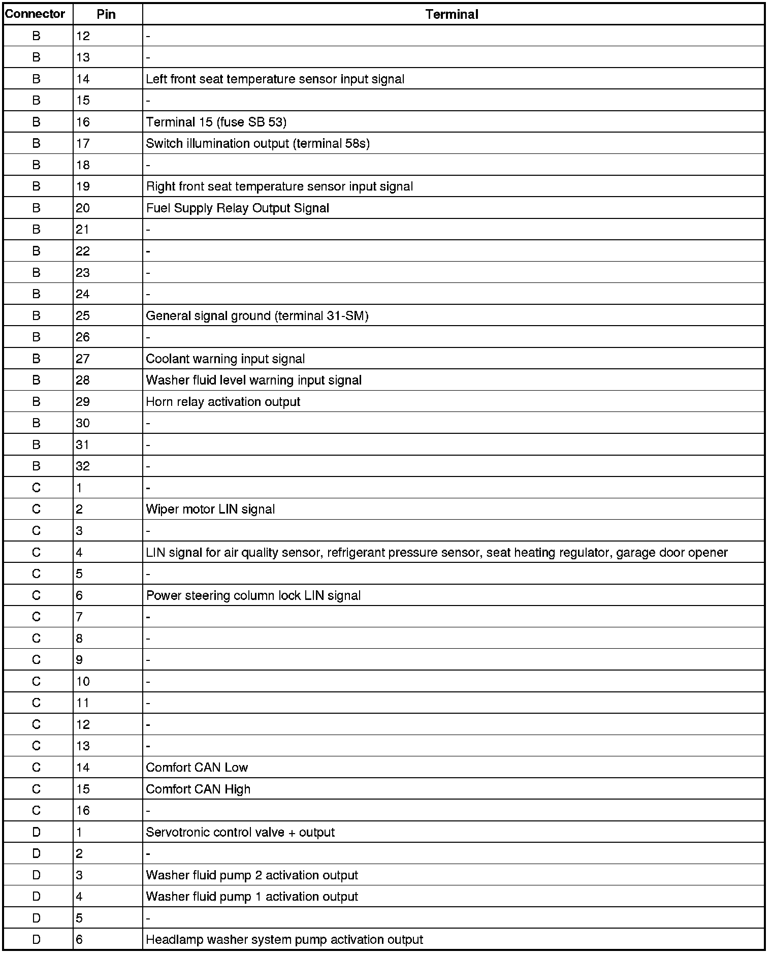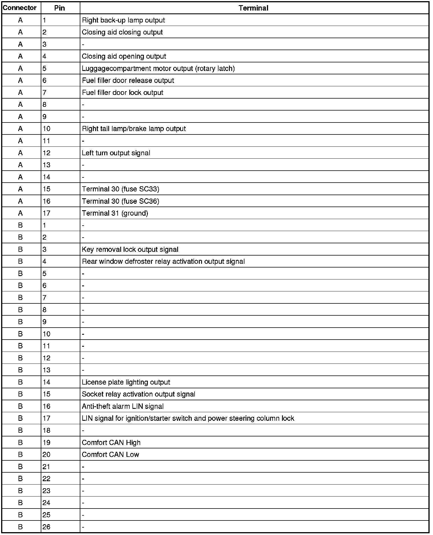 Pin Arrangements for the Comfort System Central Control Module -J393-