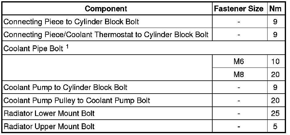 • 1 For bolt clarification, see the following => [ Coolant System Overviews ] Coolant System Overviews and => [ Coolant Pipes Overview ] Coolant Pipes Overview.