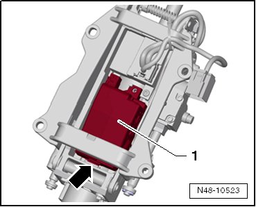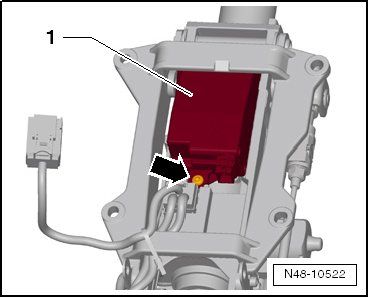 - Slightly lift the electronic steering column lock control module (J764) - 1 - and remove it from the steering column.