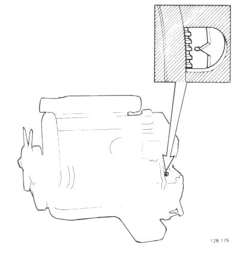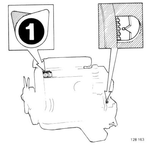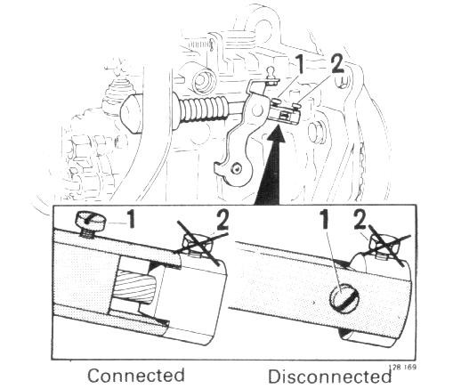 Slacken screw 1. Push lever forward and rotate sleeve 900. Note Do not turn screw 2 otherwise it will be necessary to remove cold start device and reset it on a test bench.