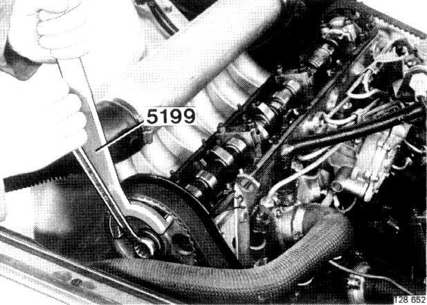 Use 5199 to hold sprocket in position when loosening bolt. Make sure that camshaft does not rotate.