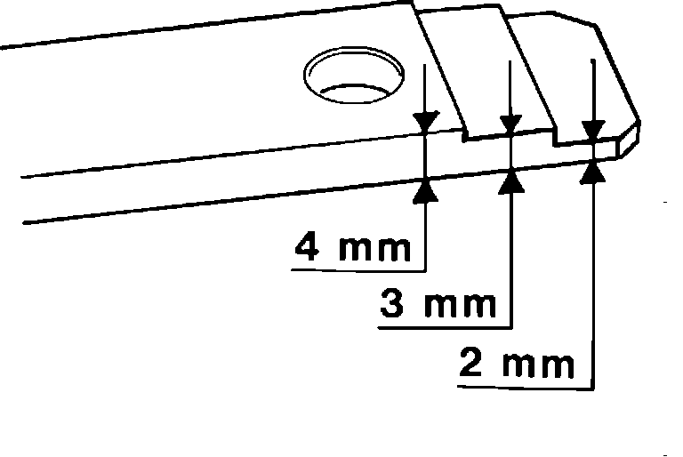 - Insert gauge (3 mm = 0.12") between screw and stop for low idle speed.
