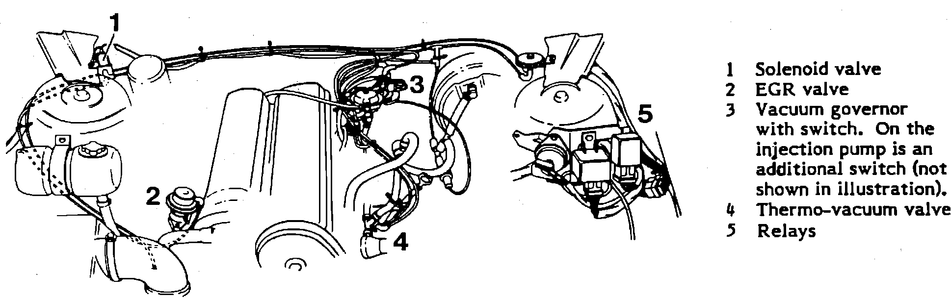Do not touch screw 2. If this screw is loosened, cold start device must be re-adjusted.