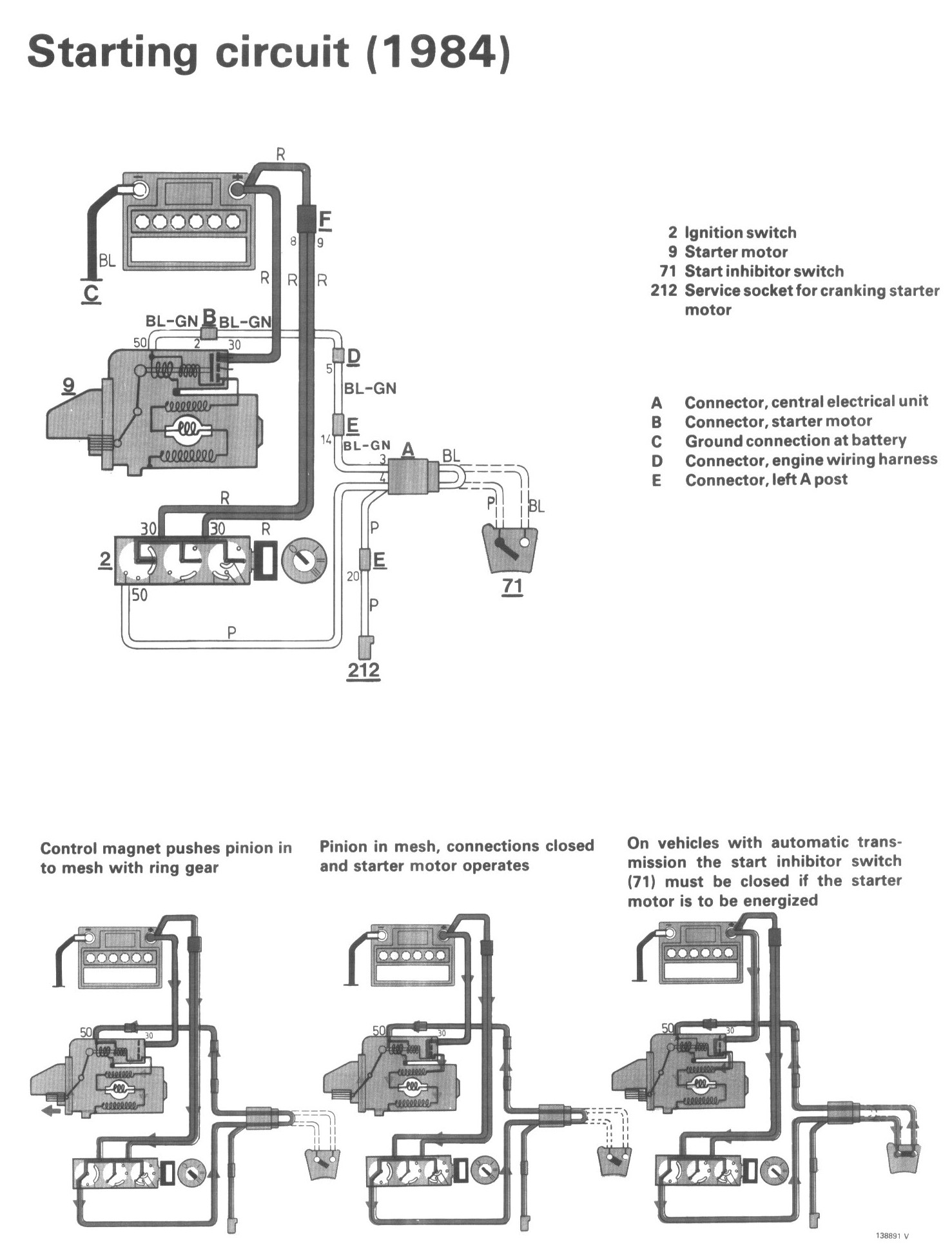 B Connector, starter motor