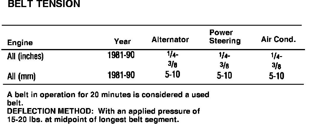 Belt Tension Specifications: