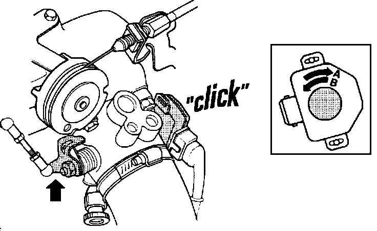 17. Adjust throttle switch by loosening retaining screws (3 mm screw). Turn switch slightly clockwise. Turn switch back again until "click" is heard. Tighten retaining screws. Recheck setting.