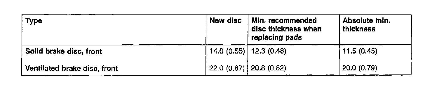 New disc: Min. recommended disc thickness when replacing pads; absolute min. thickness