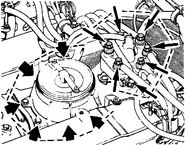 2. Disconnect all fuel lines Fig. 268. at air-fuel control unit. Be careful not to allow dirt to enter air-fuel control unit.