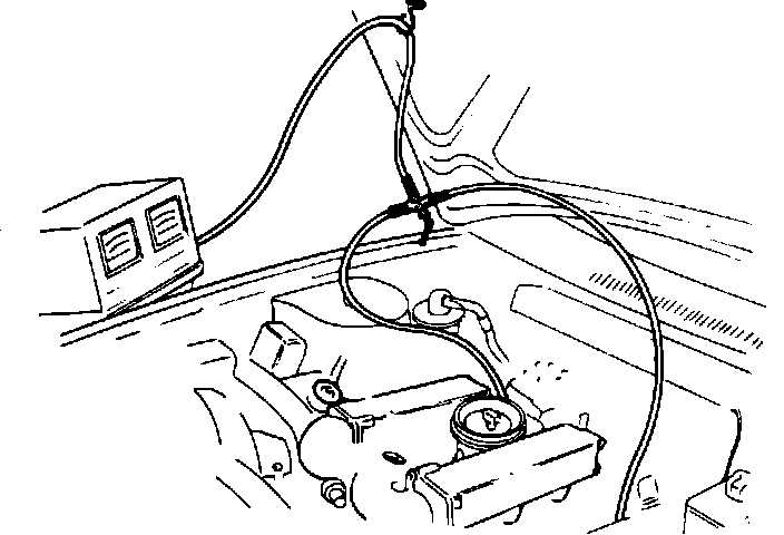 12. Check idle speed with air conditioner off (750 ± 20 RPM). Idle speed is controlled by an electronic control unit (ECU). Adjust idle speed only if it is out of specified tolerances, see "IDLE SPEED".